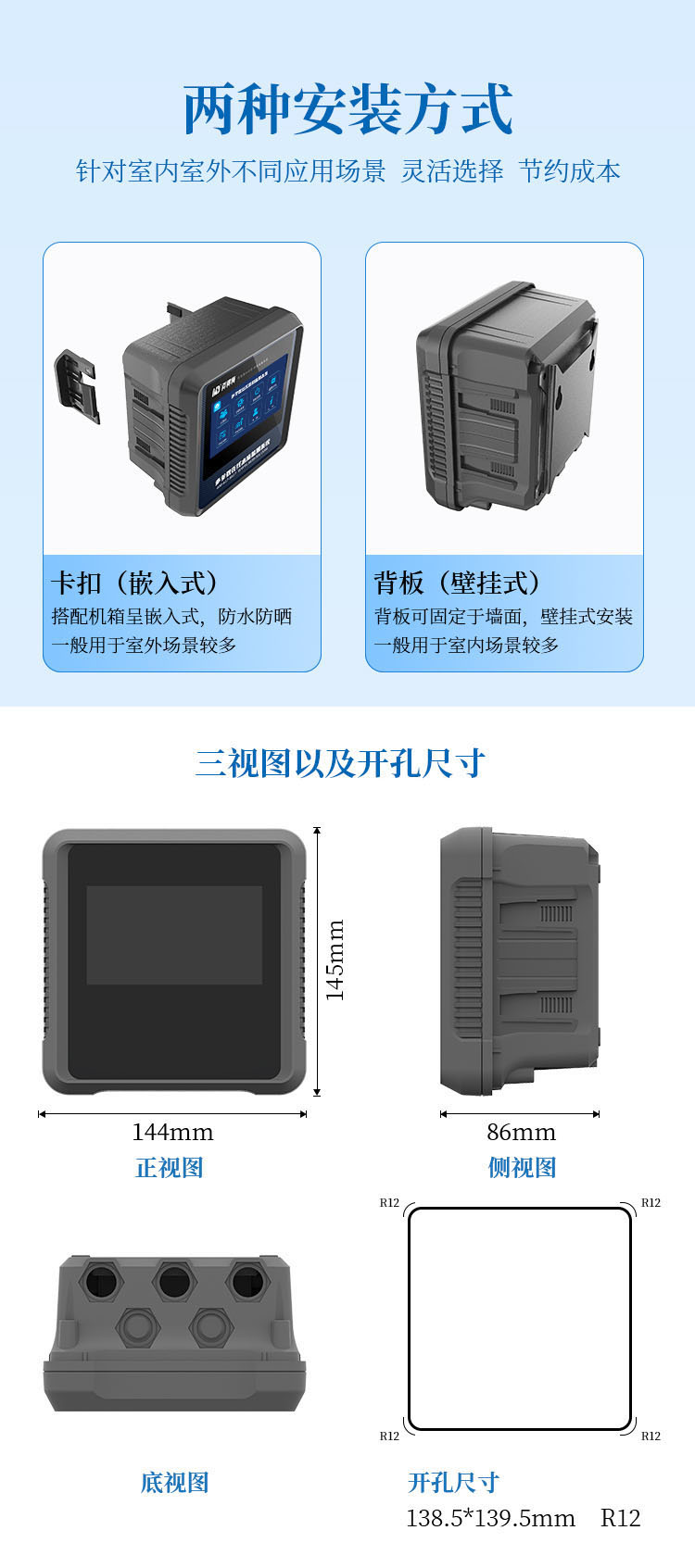 控制器可以实现壁挂安装/面板安装/夹管安装;