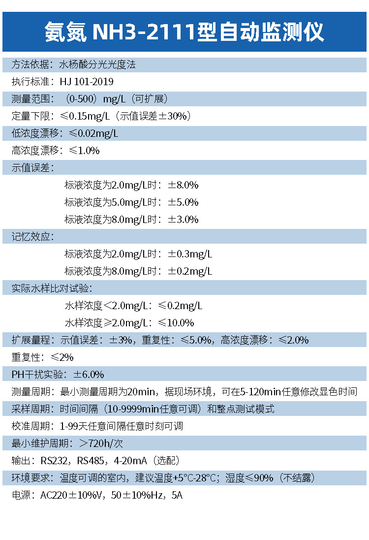 低浓度漂移:≤0.02 mg/L