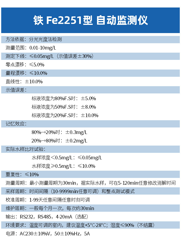 维护周期:一般每月一次,每次约30 min。输出:RS-232,RS-485,4-20mA(选配)